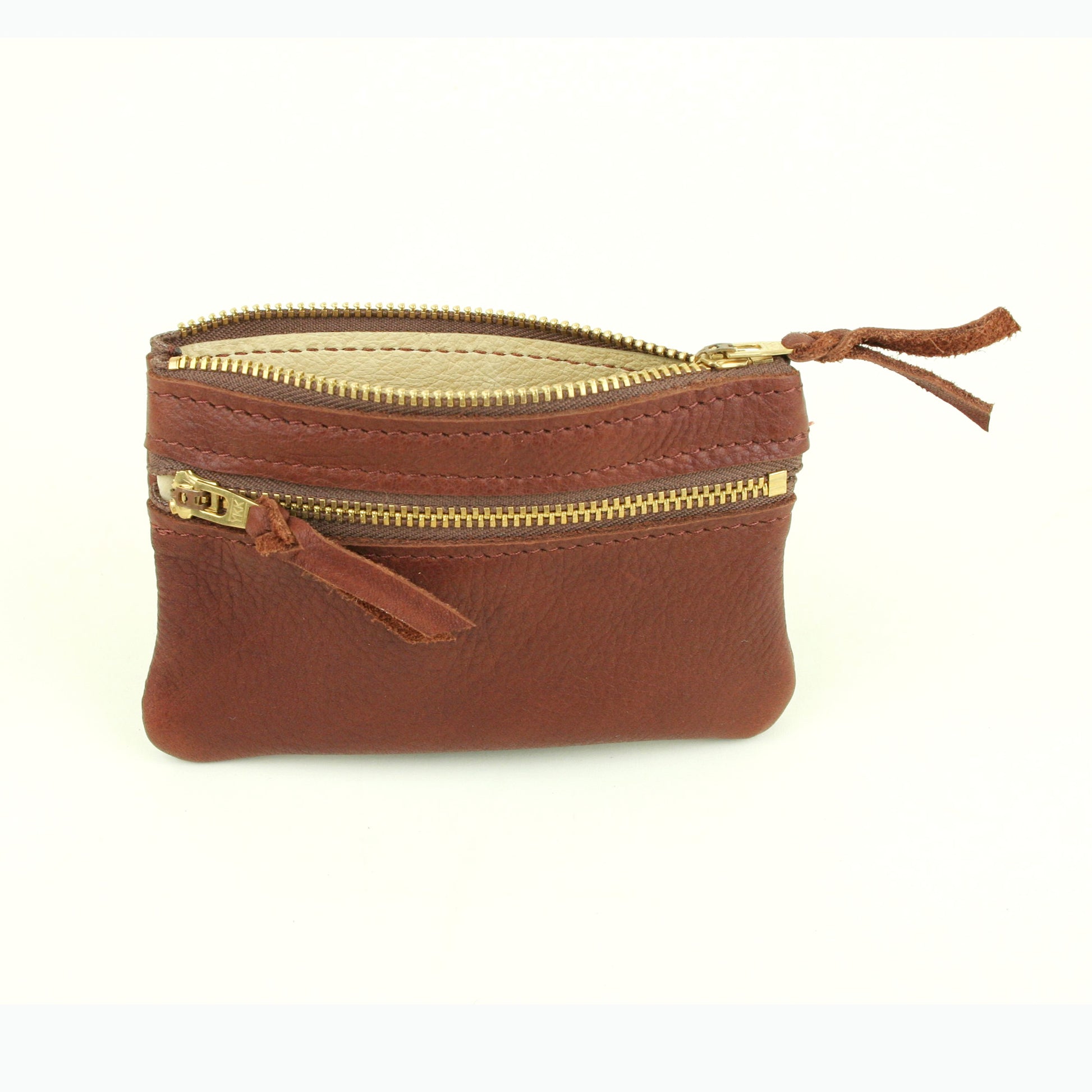 This handy little leather coin purse has two zipper pockets instead of one. Pockets can fit cards, cash, and coins, or anything else you can think to put in them!